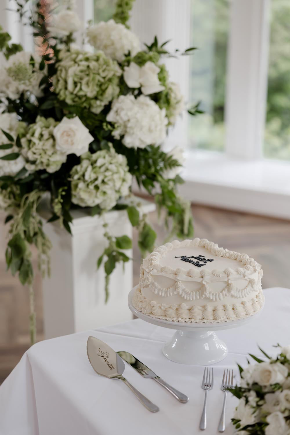 This design does not include toppers. No metallic buttercream or metallic writing. “White” cakes will be as close to white as possible, however our cakes are made with fresh buttercream which naturally has a yellow tinge.